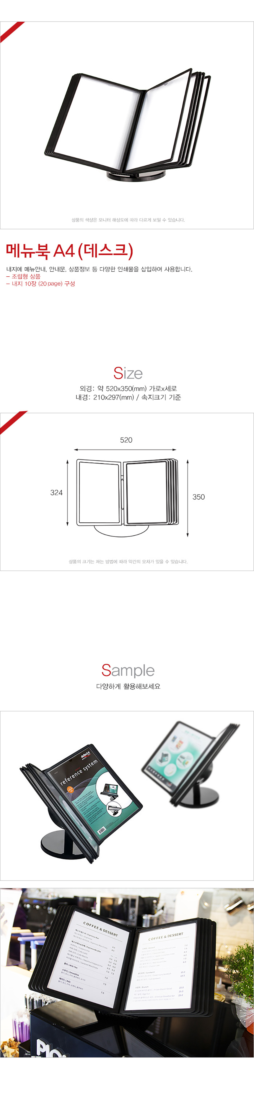 | 제품명 | 메뉴북A4 데스크 1개입 1BOX 2개입 |