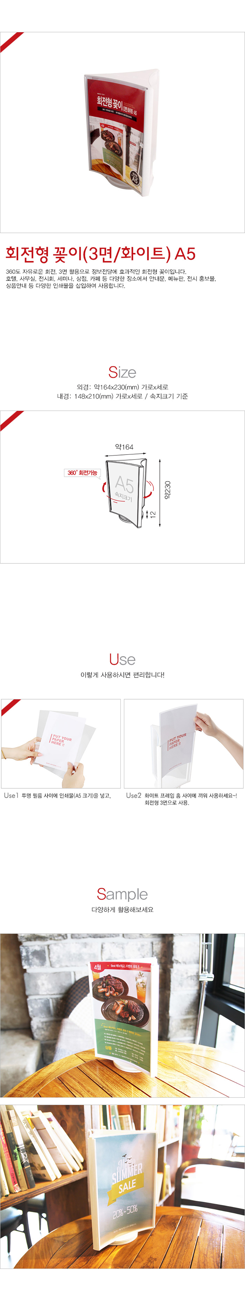 | 제품명 | 회전형꽂이A5 3면 흰색 1개입 1BOX 6개입 |