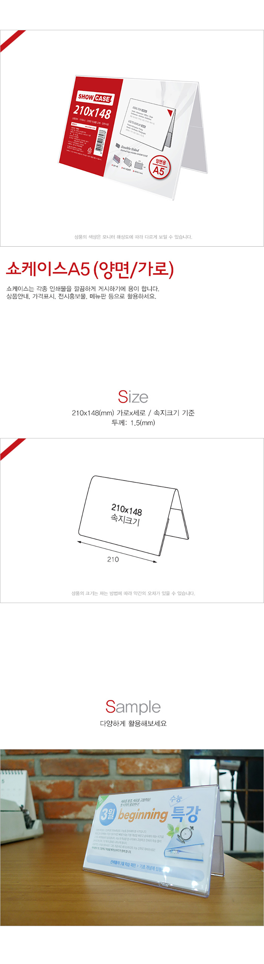 | 제품명 | 쇼케이스A5 양면 가로 1개입 |