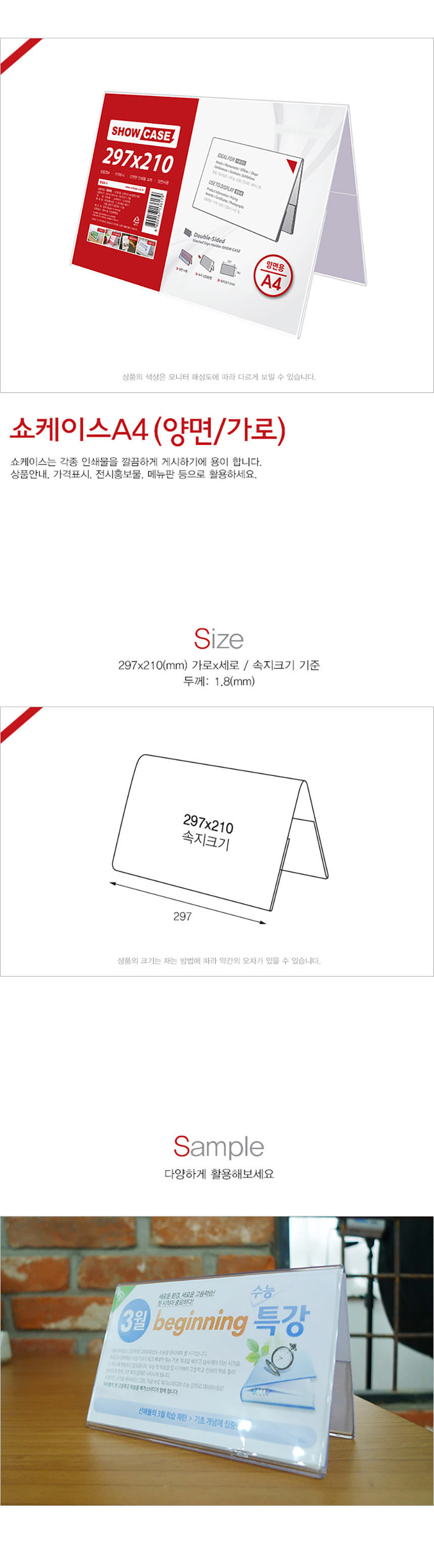 | 제품명 | 쇼케이스A4 양면 가로 1개입 |