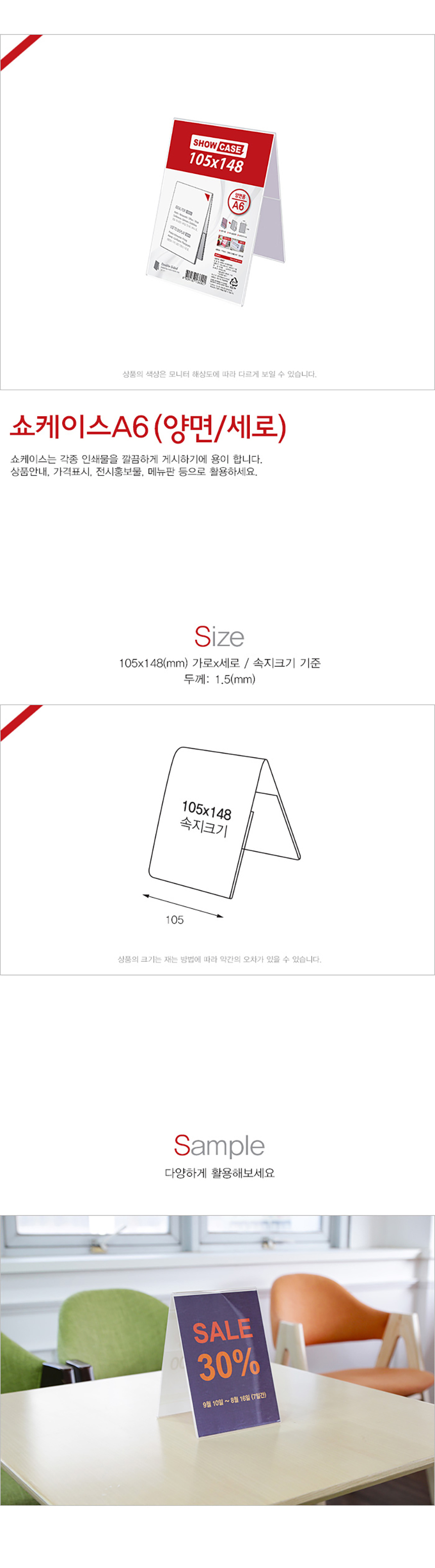 | 제품명 | 쇼케이스A6 양면 세로 1개입 |
