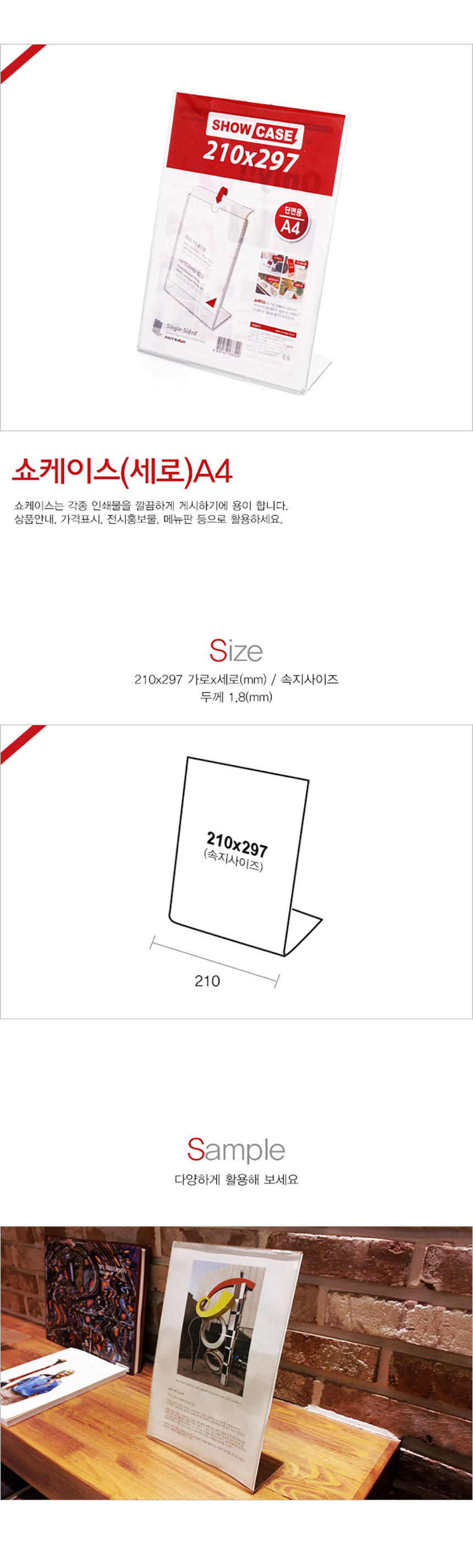 | 제품명 | 쇼케이스A4 단면 세로 1개입 |