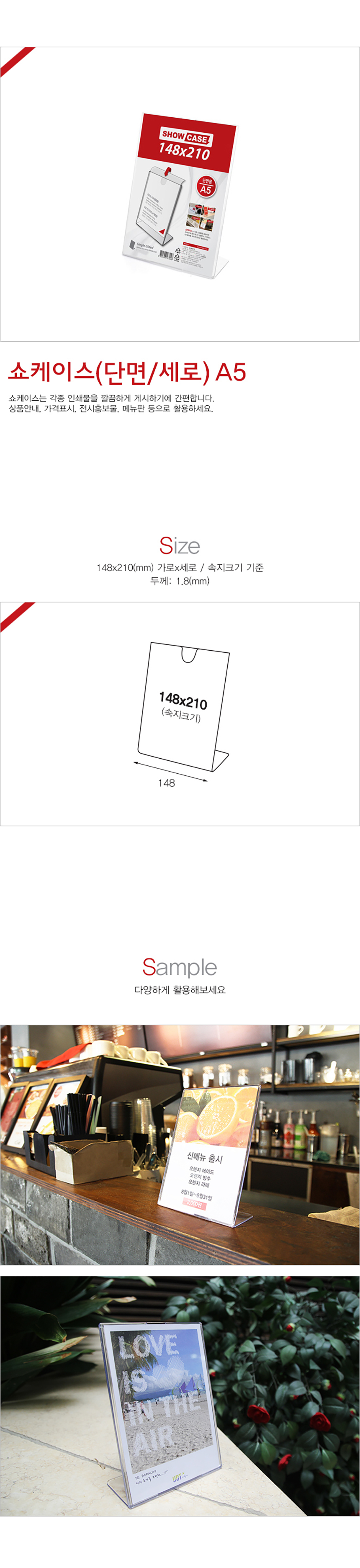 | 제품명 | 쇼케이스A5 단면 세로 1개입 |