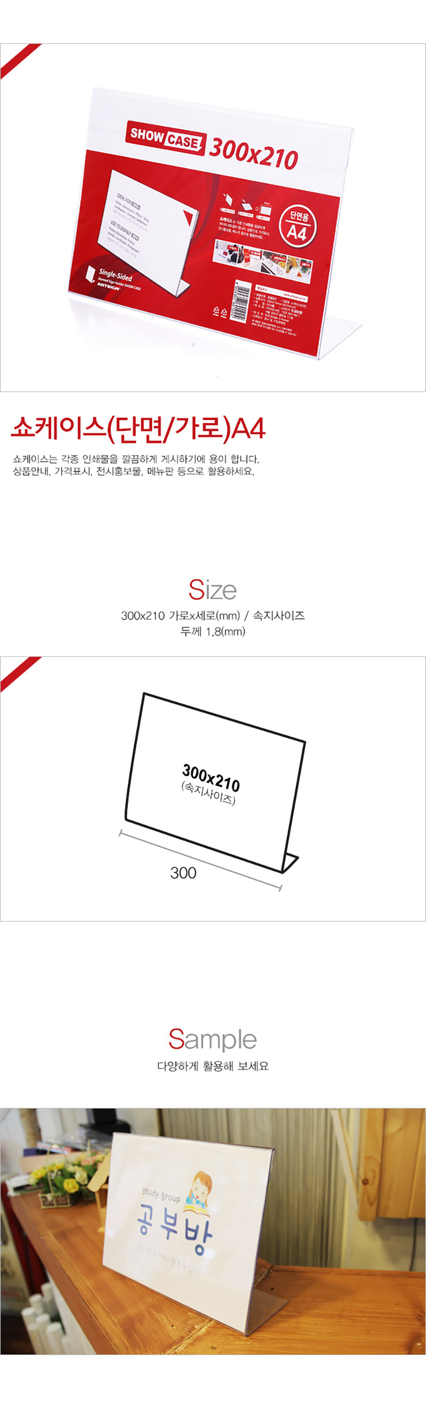 | 제품명 | 쇼케이스A4 단면 가로 1개입 |