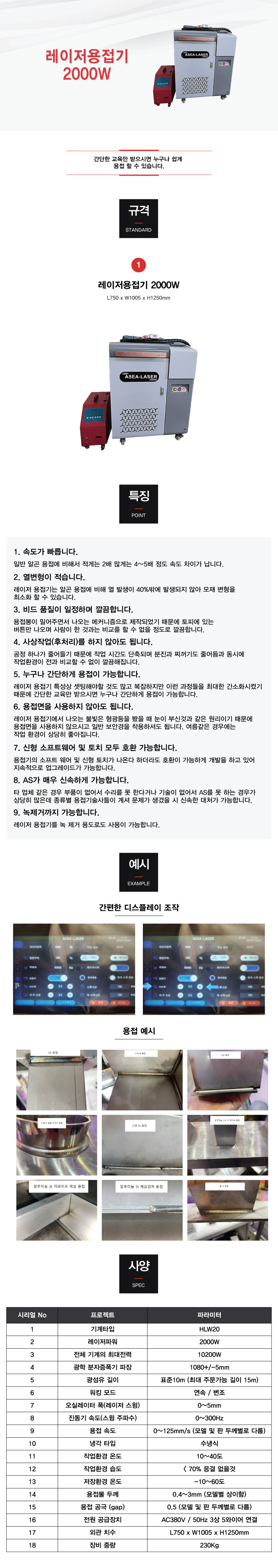 | 제품명 | 레이저용접기 2000W |