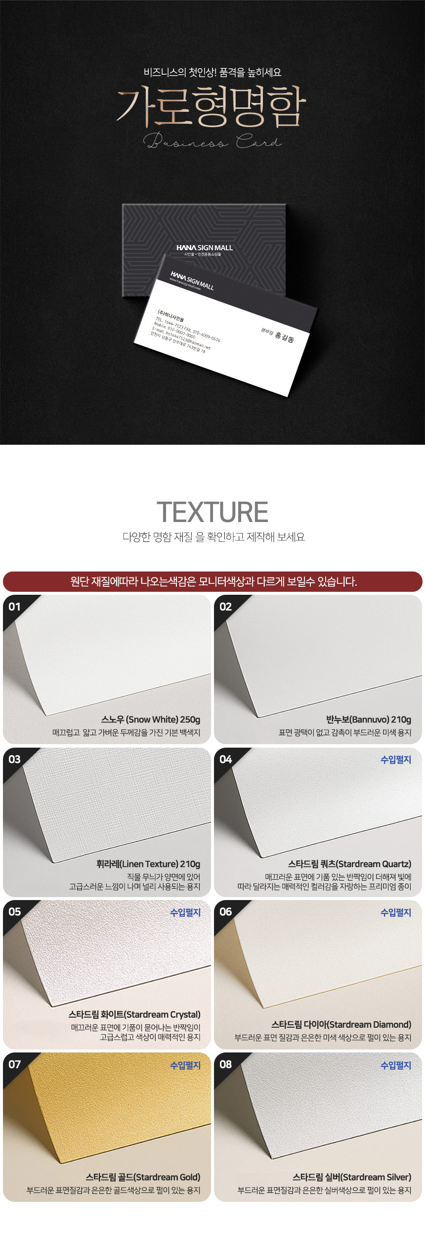 제품명 셀프디자인 명함 가로형