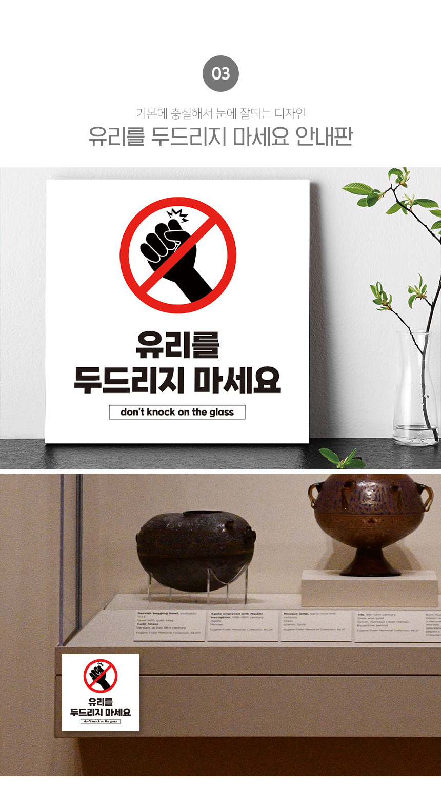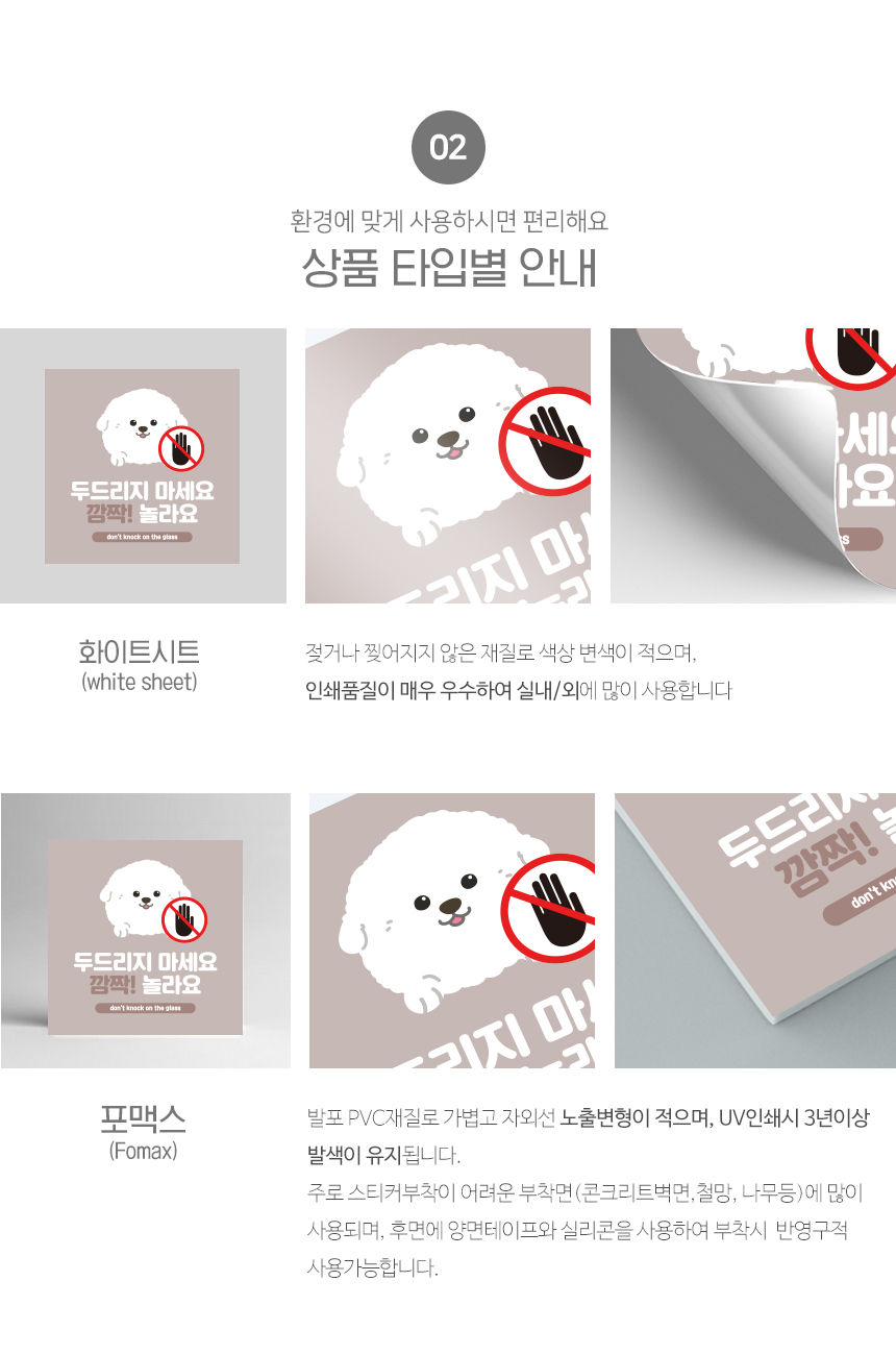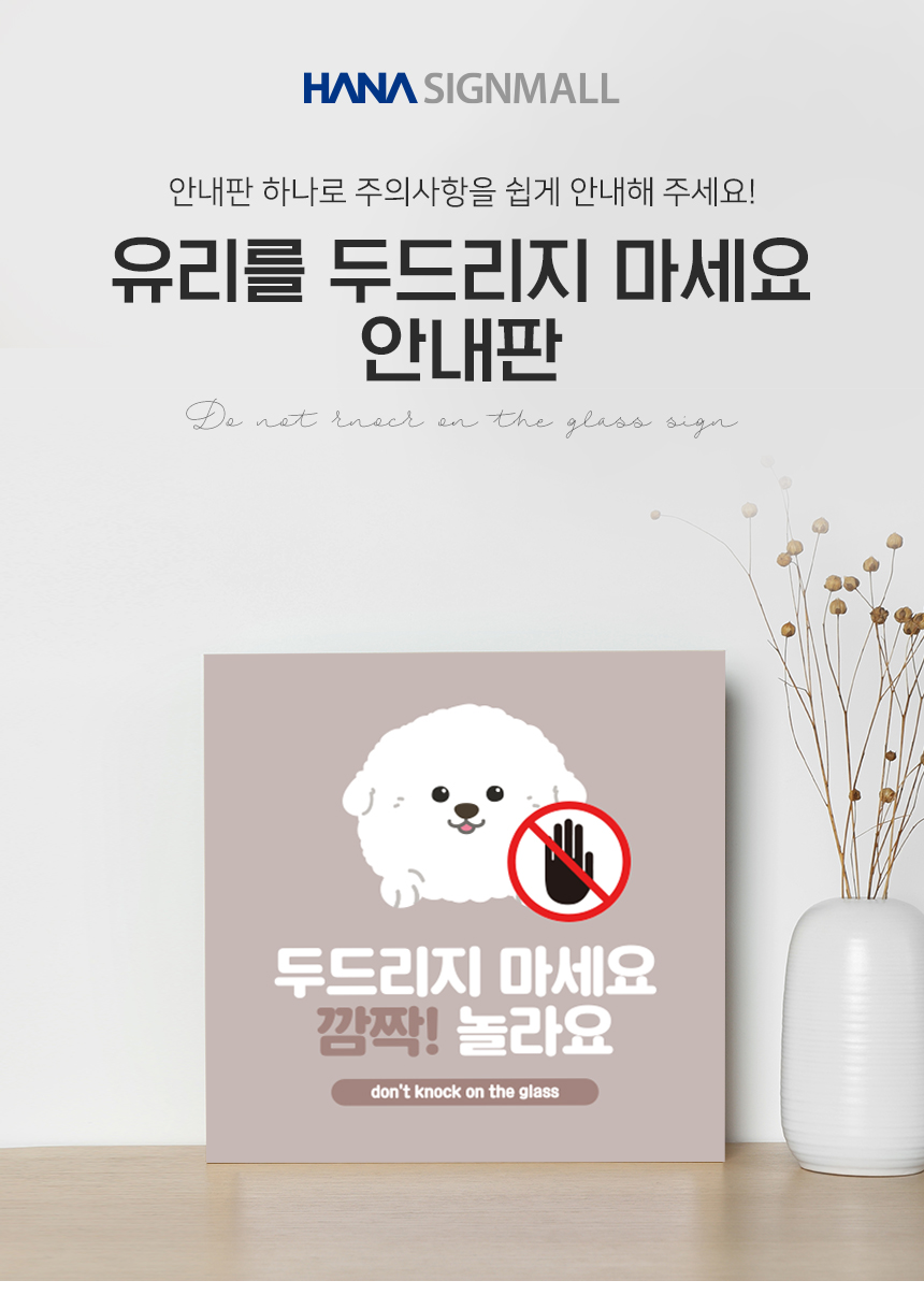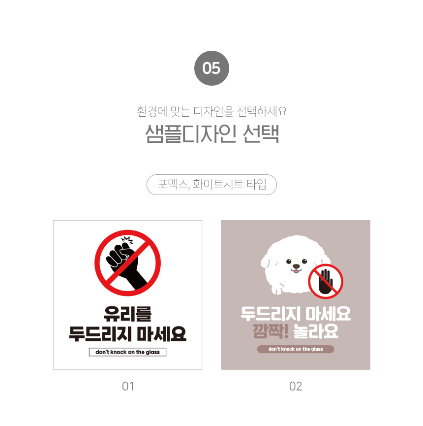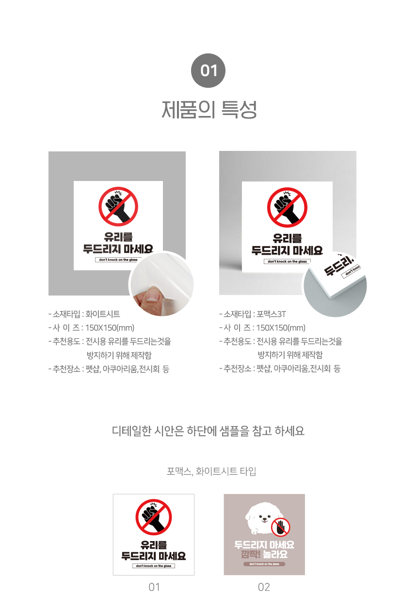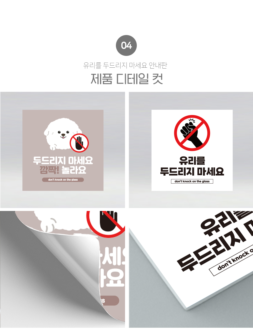 | 제품명 | 유리를 두드리지 마세요 안내판 화이트시트 포맥스 정사각형 타입 |