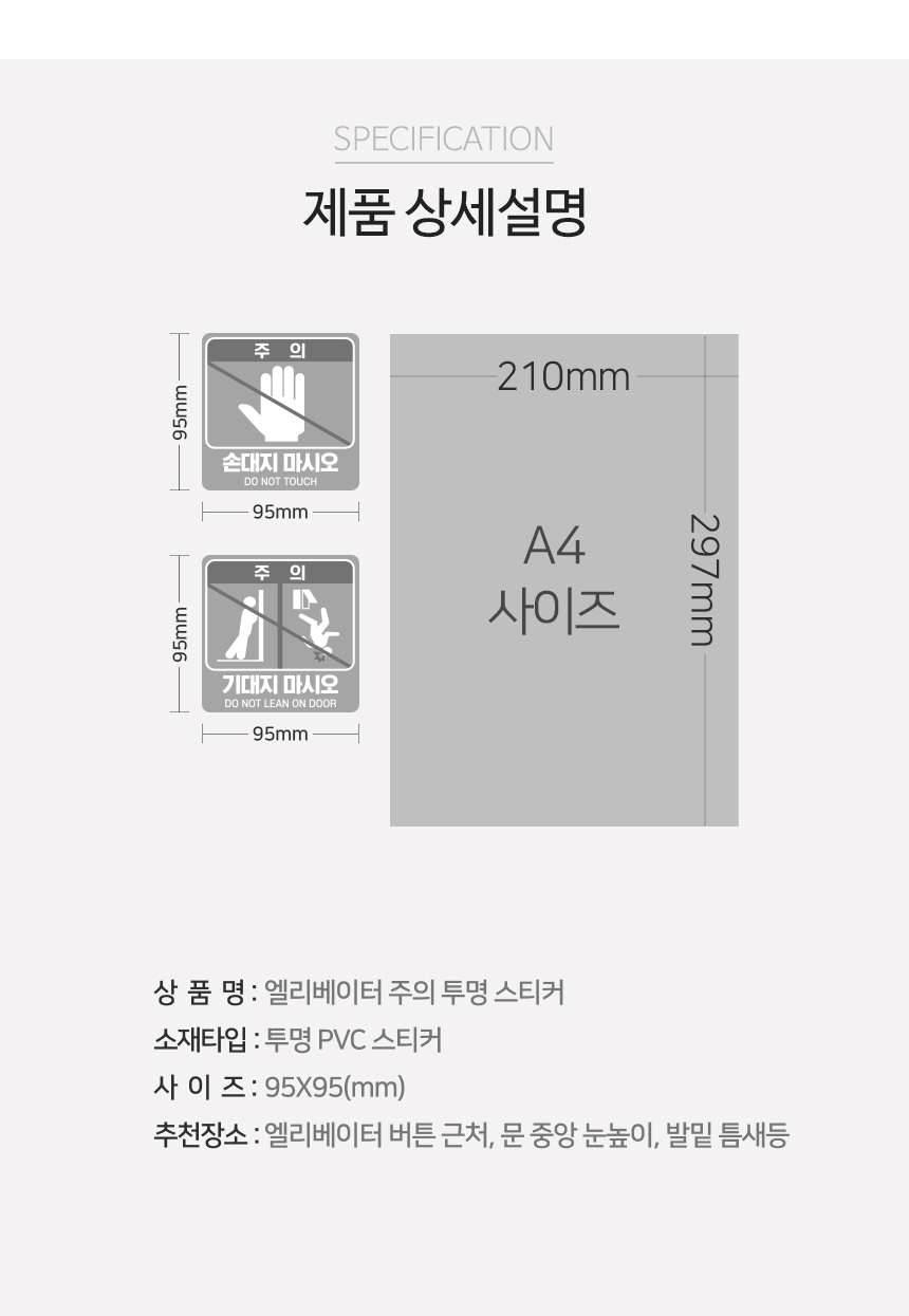| 제품명 | 엘리베이터 주의 투명 스티커 |
