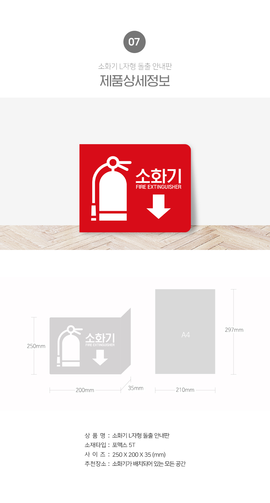 | 제품명 | 소화기 L자형 돌출 안내판 |