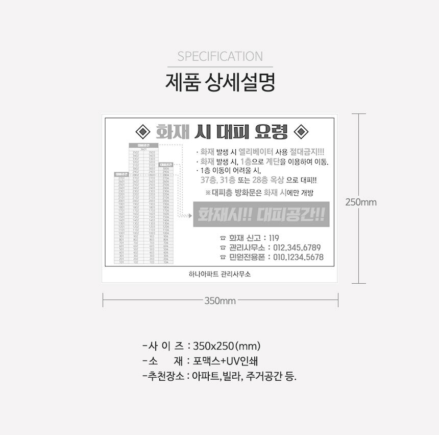 | 제품명 | 화재시대피요령 안내판 |