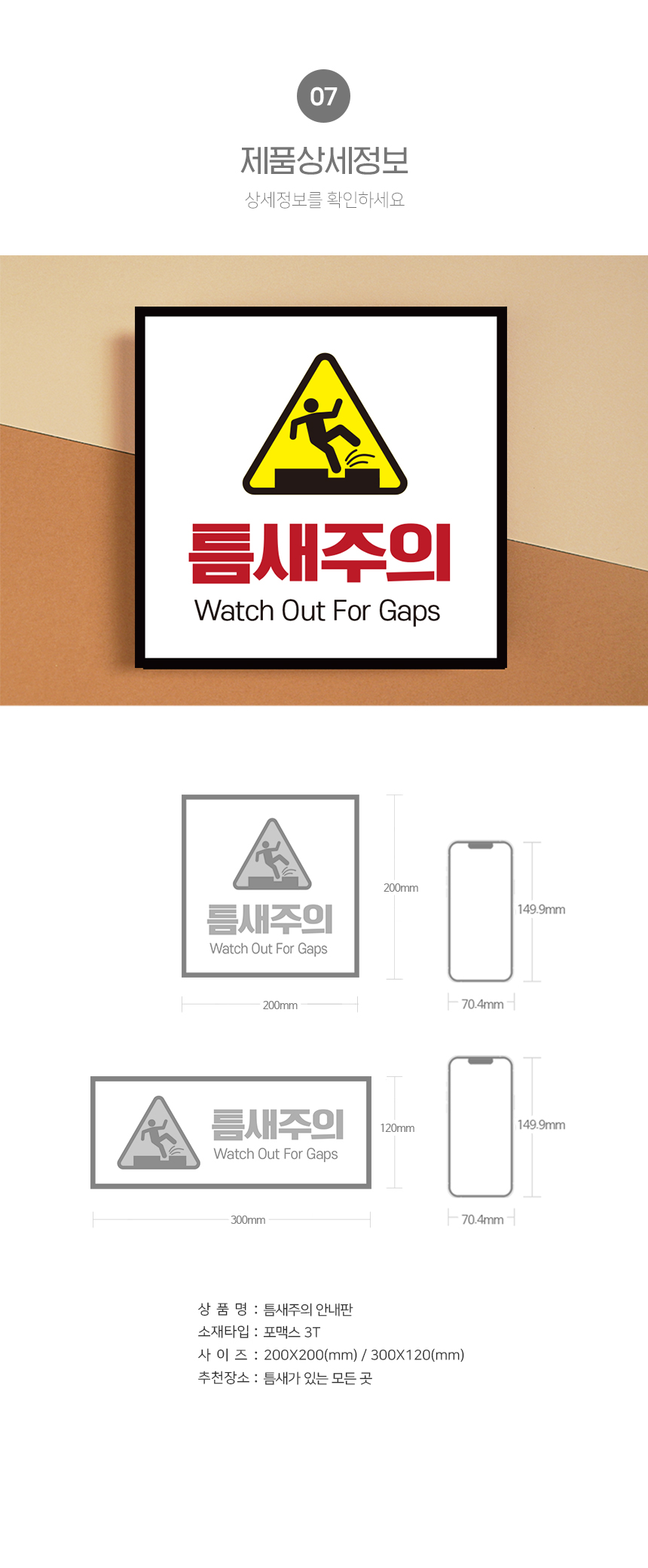 제품명 틈새주의 안내판