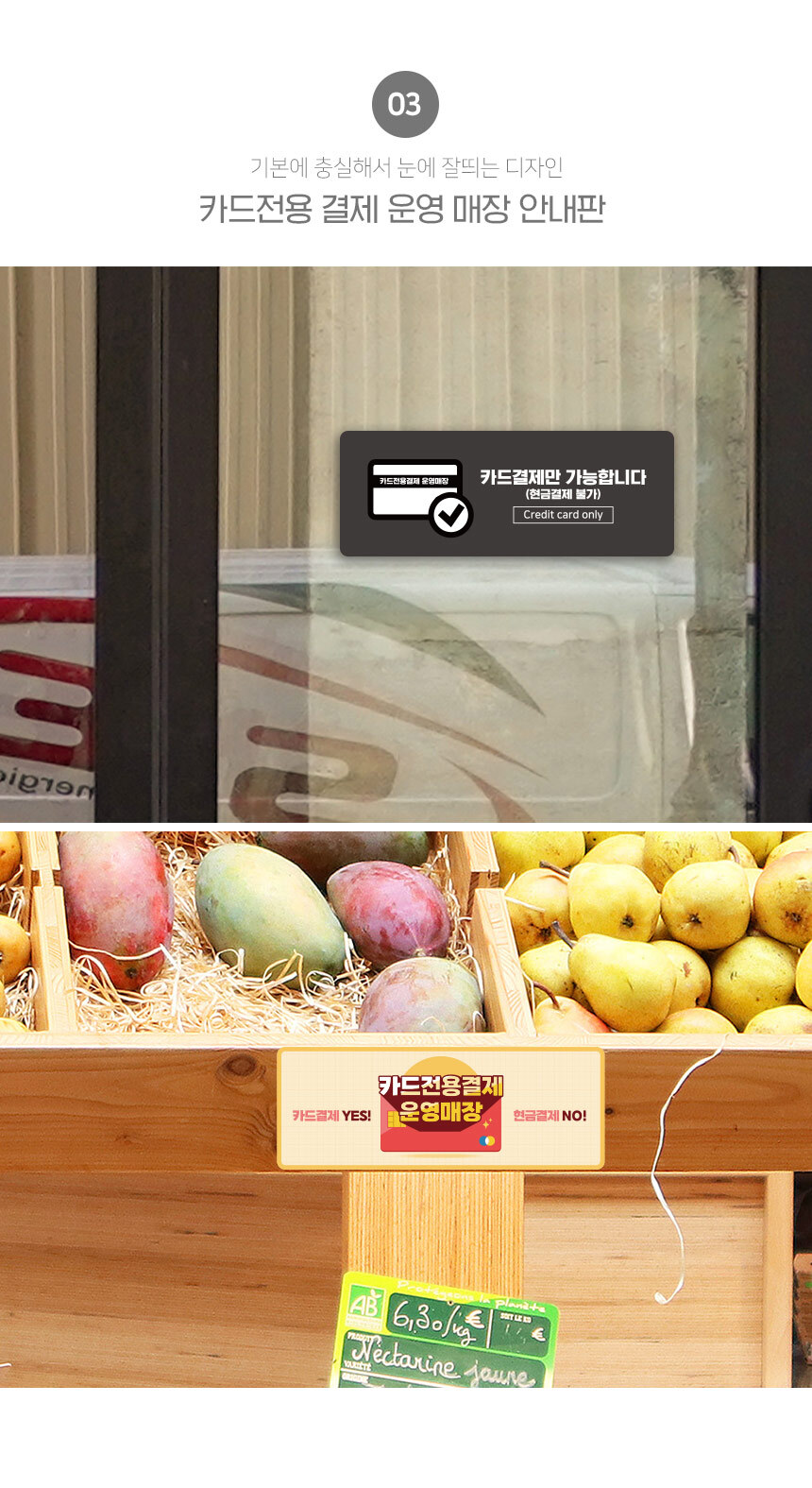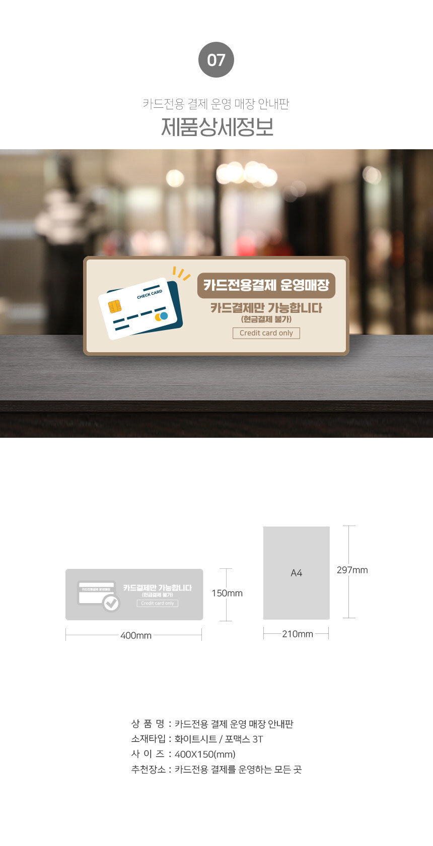 | 제품명 | 카드전용결제 운영매장 안내판 |