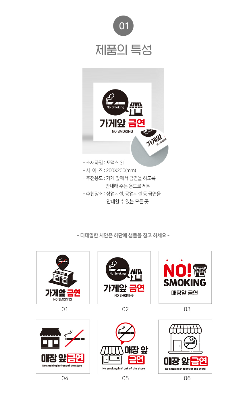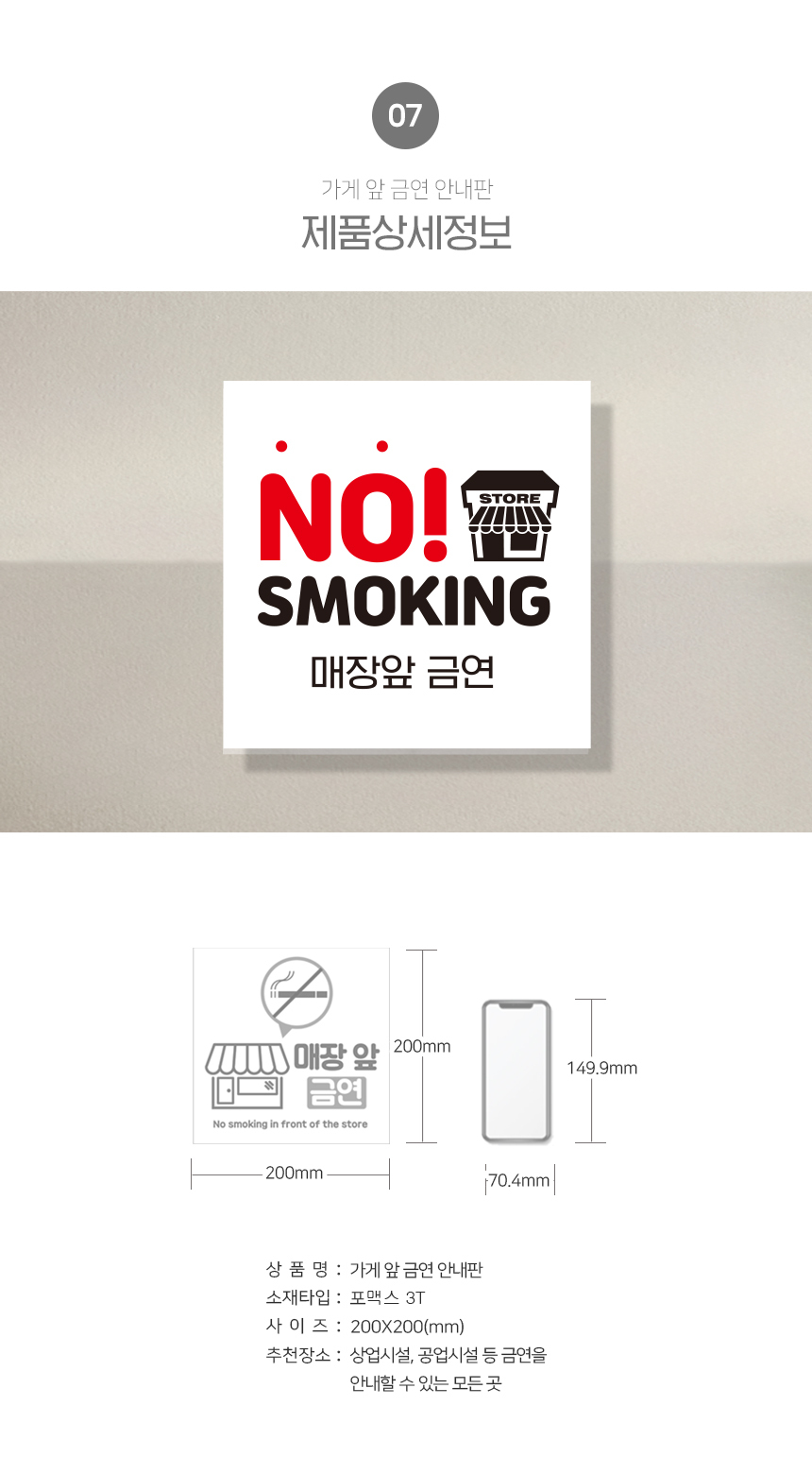 제품명 가게 앞 금연 안내판 포맥스 정사각형 타입