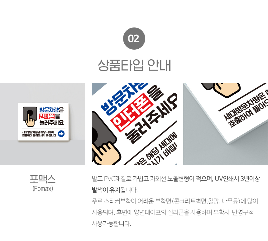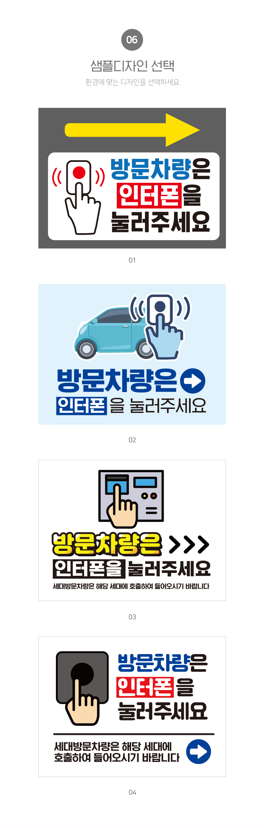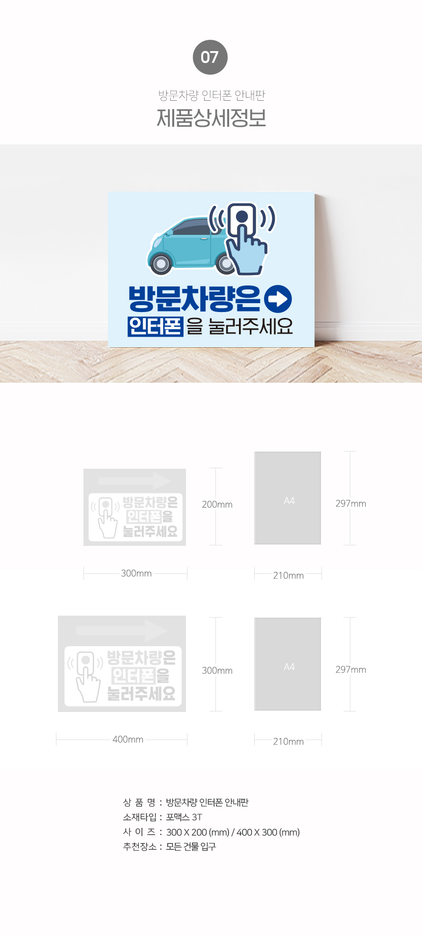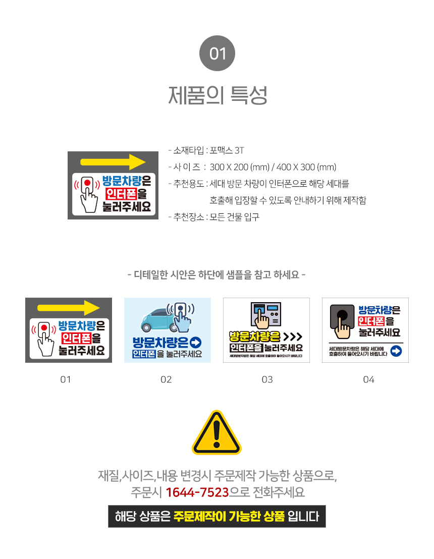 | 제품명 | 방문차량은 인터폰을 눌러주세요 안내판 |