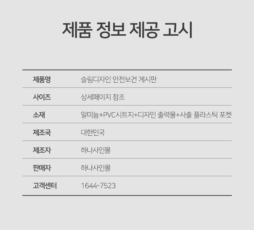 | 제품명 | 슬림디자인 안전보건 게시판 |