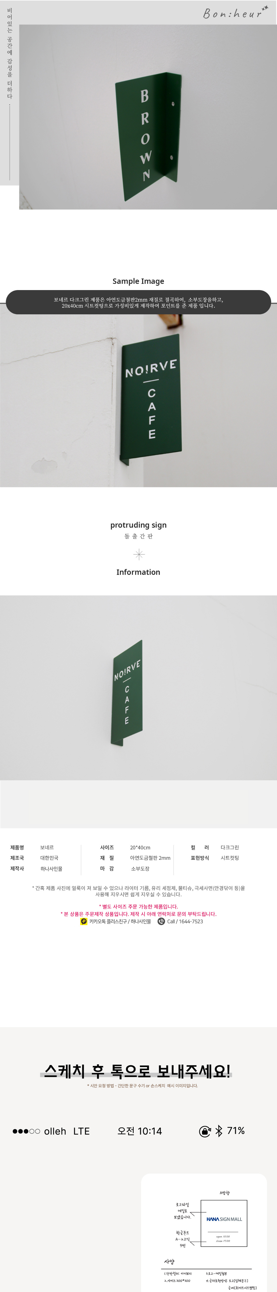 | 제품명 | 간판 보네르 다크그린 돌출간판 컬러 네일 미용실 현판 벽간판 |