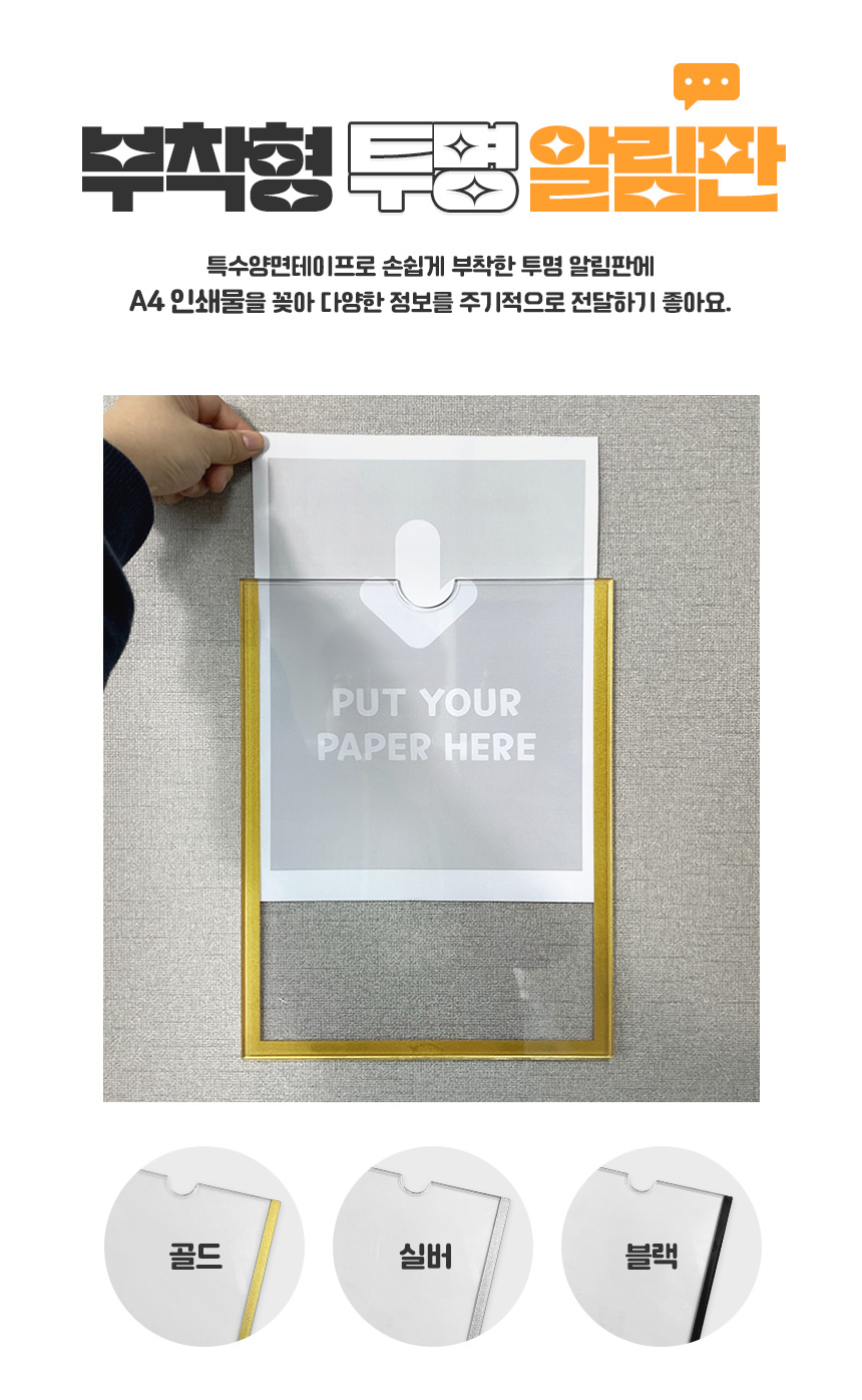 | 제품명 | 부착형 아크릴포켓 투명 알림판 A4 |