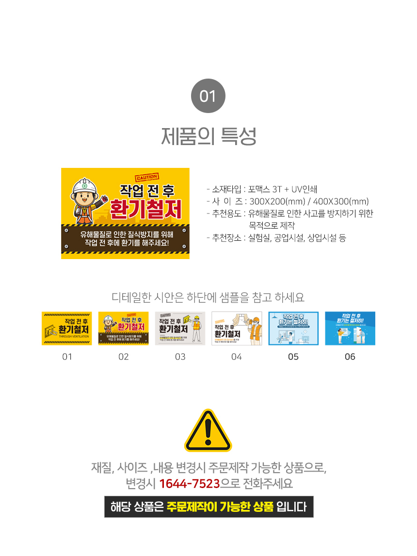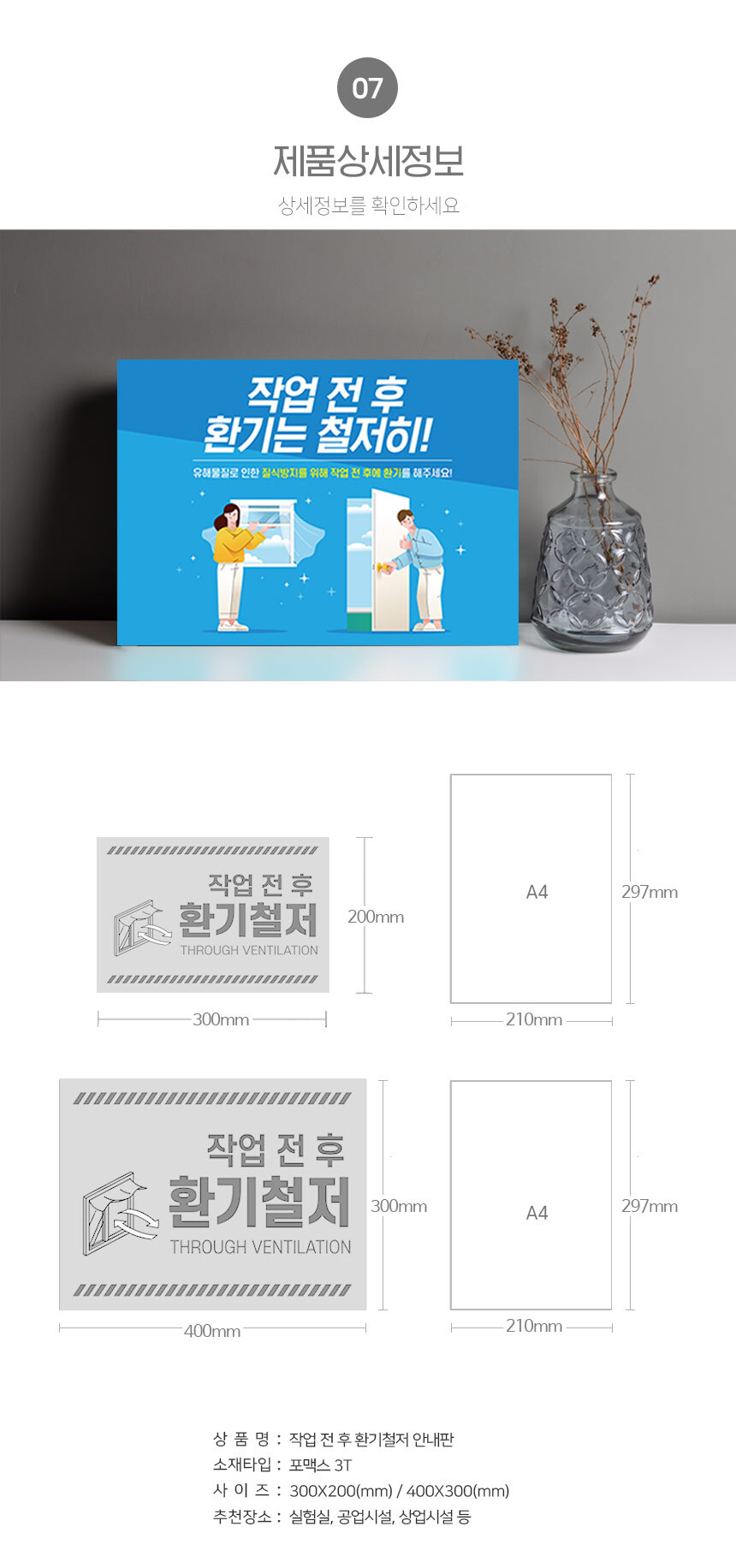 | 제품명 | 작업 전 후 환기철저 안내판 |