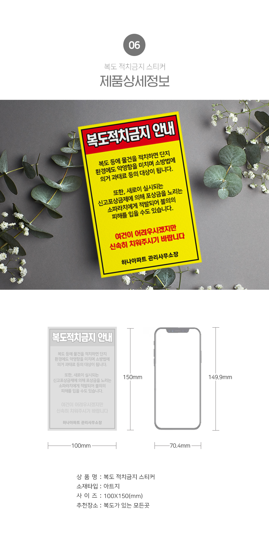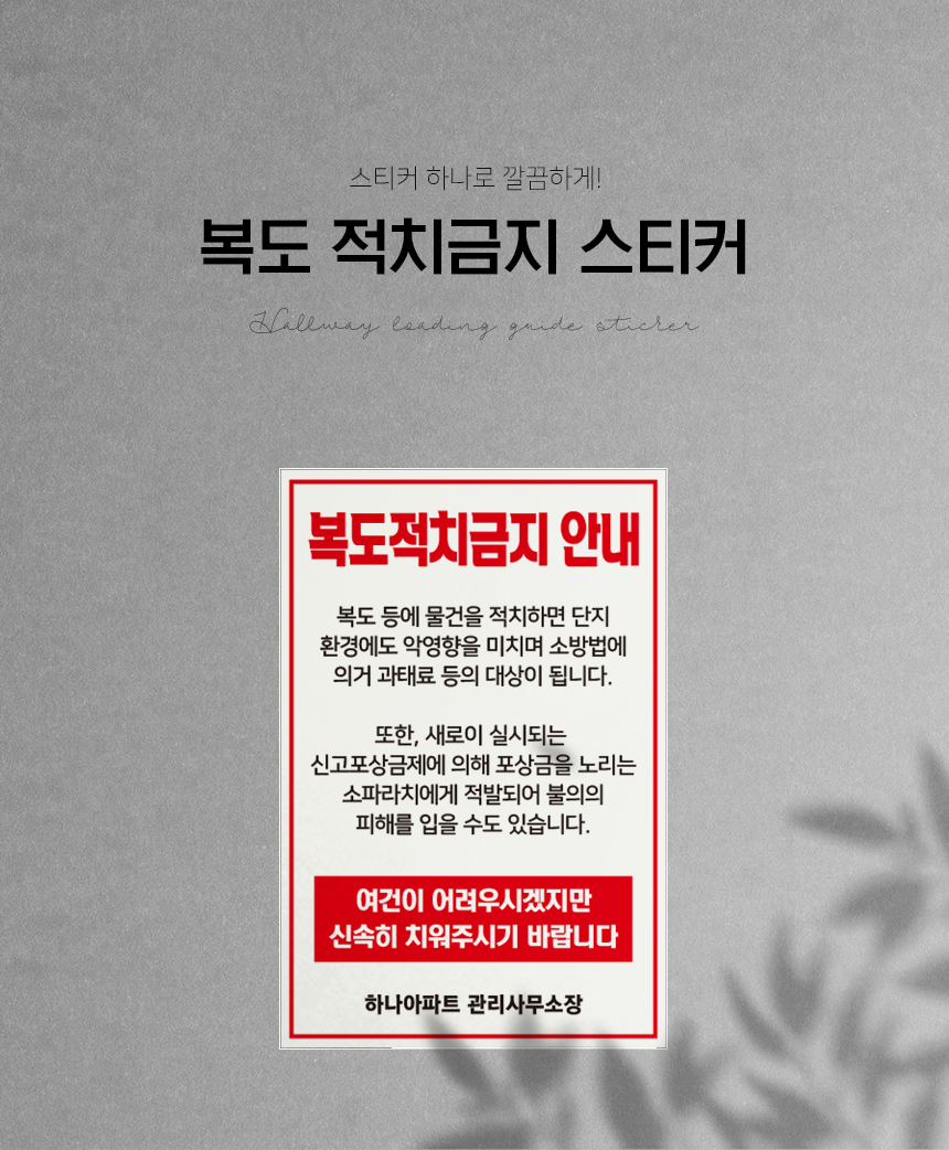 | 제품명 | 복도 적치금지 스티커 |