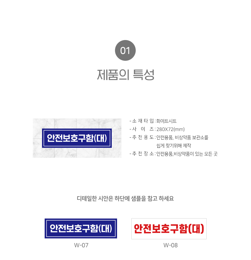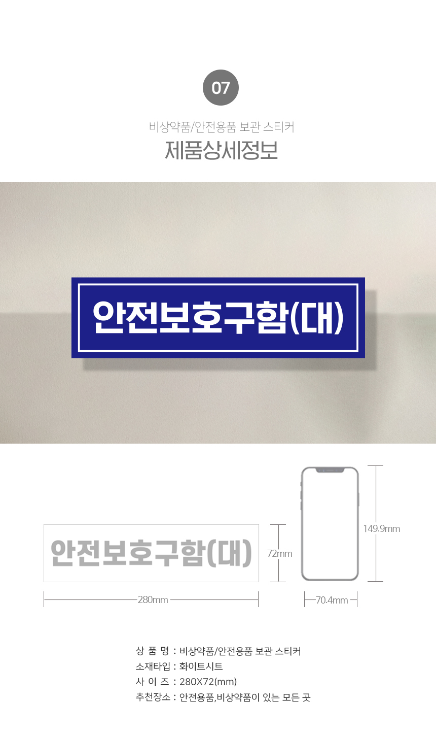 제품명 비상약품 안전용품 보관 스티커 화이트시트 대형 타입