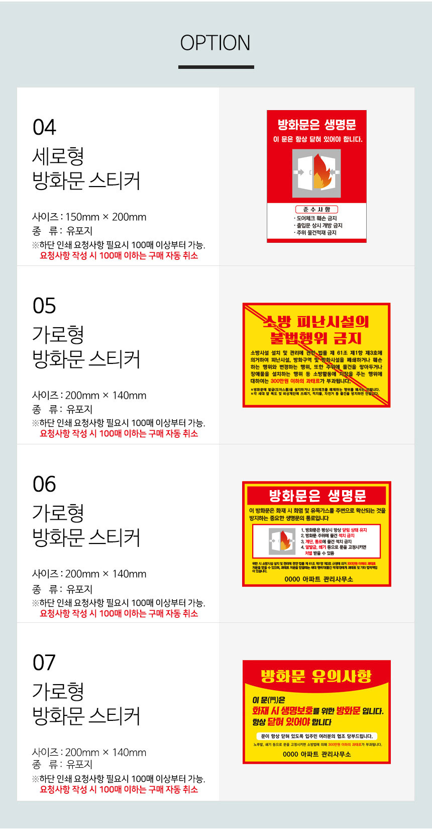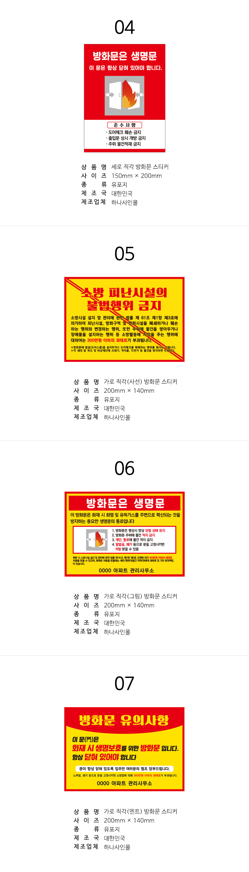 제품명 방화문 스티커 유포지 묶음상품