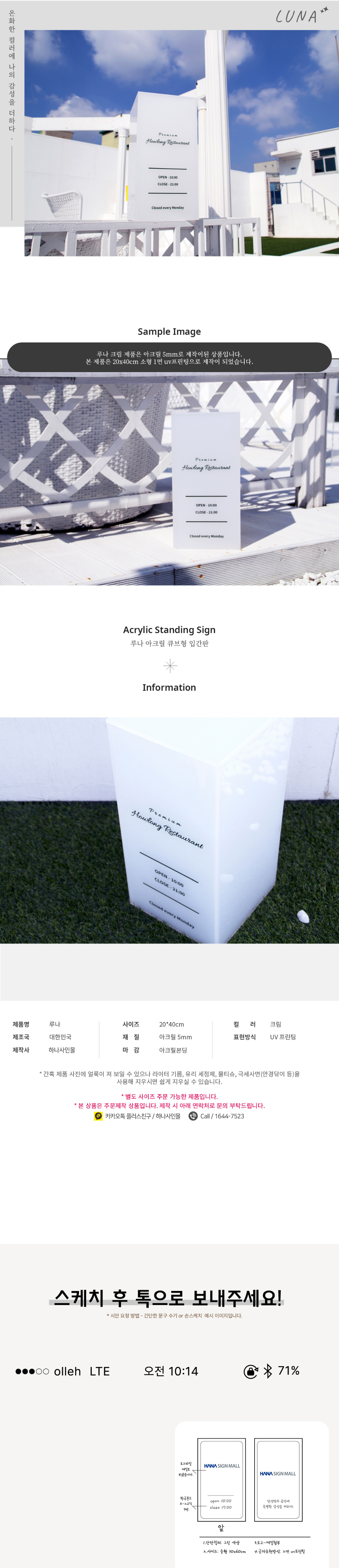| 제품명 | 간판 루나 크림 아크릴입간판 아크릴 큐브 박스 스탠드 미니 포인트 이쁜 입간판 입구 간판 |