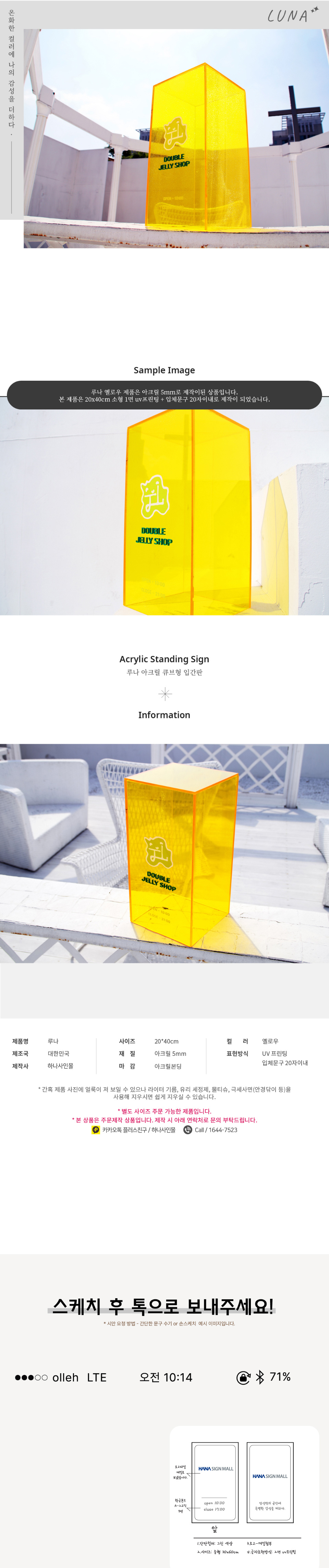 제품명 간판 루나 옐로우 아크릴입간판 아크릴 큐브 박스 스탠드 미니 포인트 이쁜 입간판 입구 간판