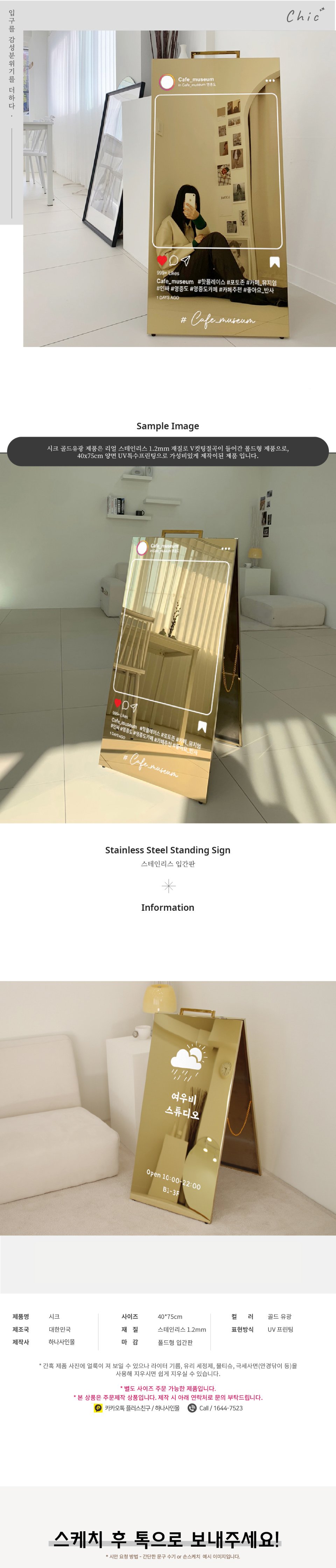 | 제품명 | 간판 시크 인스타 감성 골드 스탠드 입간판 입구간판 |