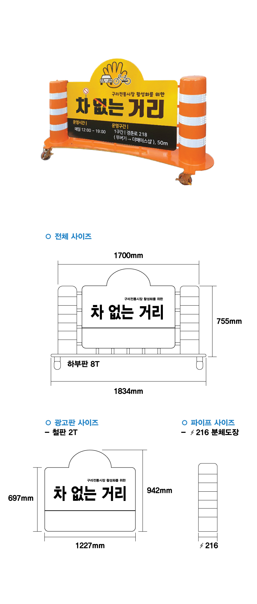 • 제품규격 H1000*L2000*∮100*∮50*1.5t
