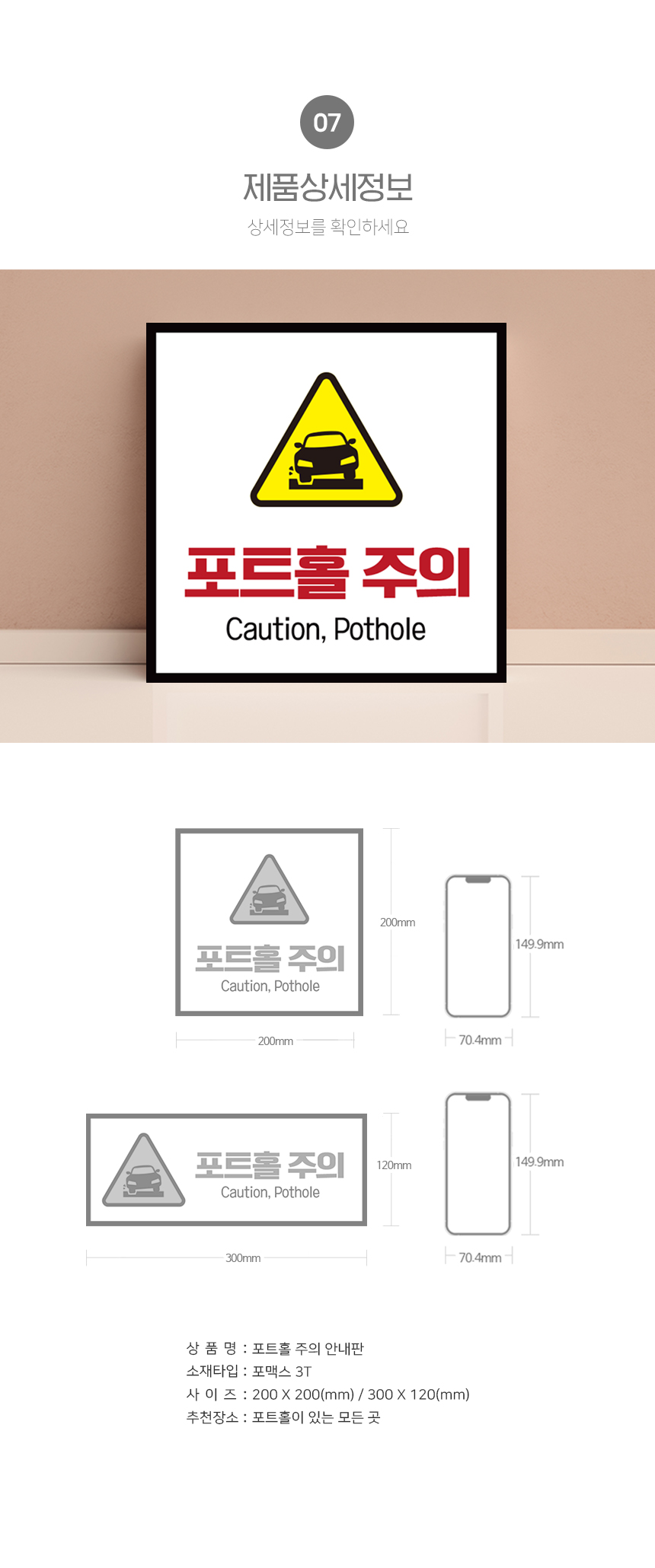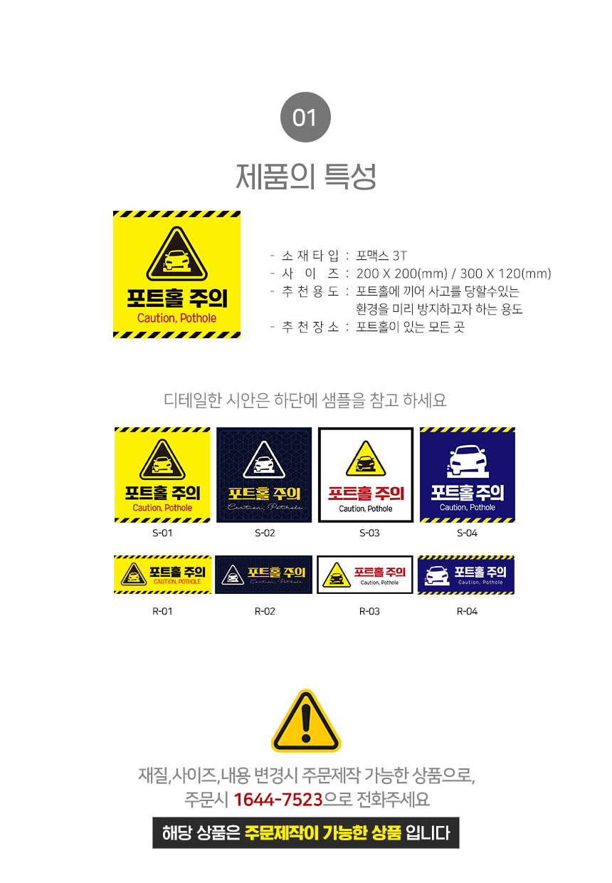 | 제품명 | 포트홀주의 안내판 |
