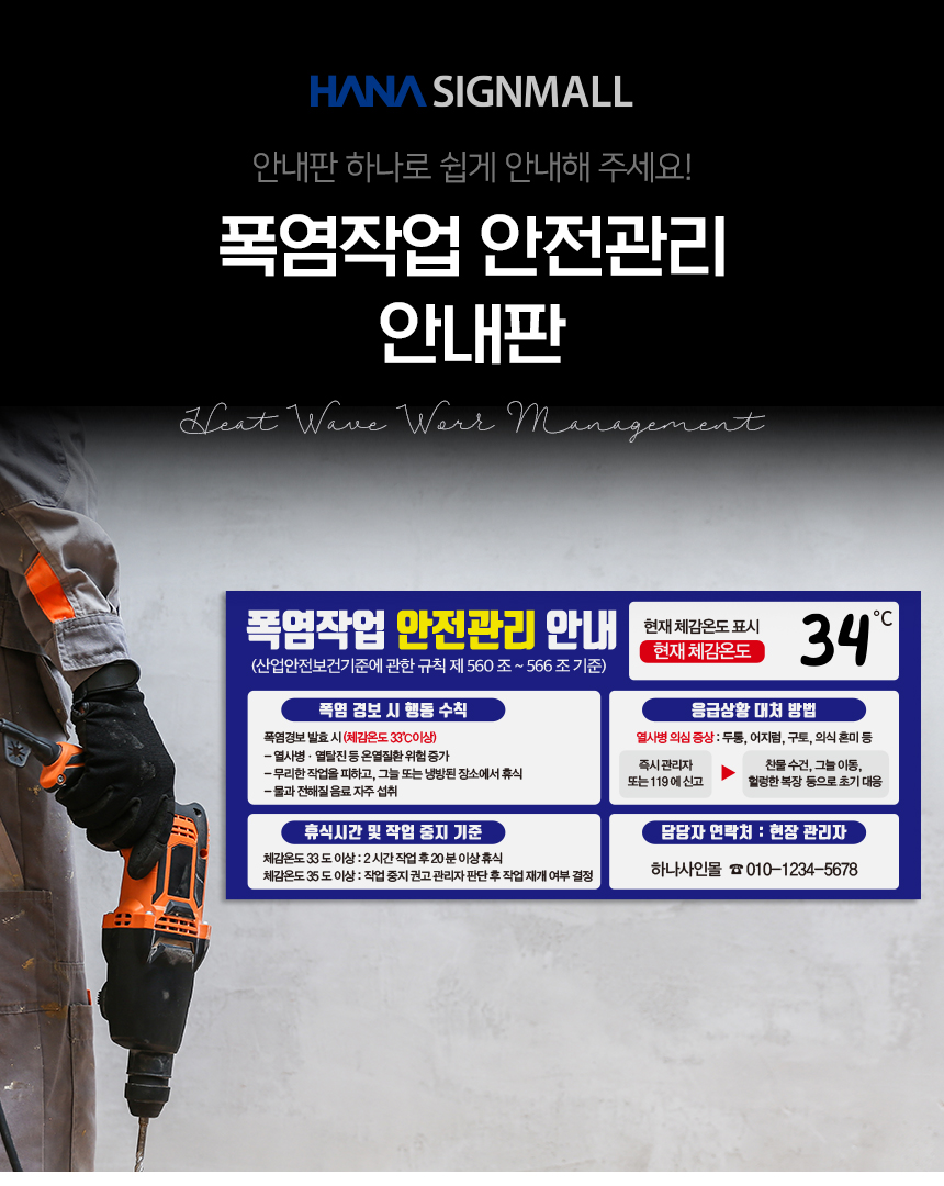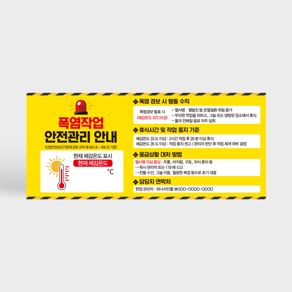 폭염작업 안전관리 안내판 포맥스 / 자석시트 + 화이트보드 대형 타입