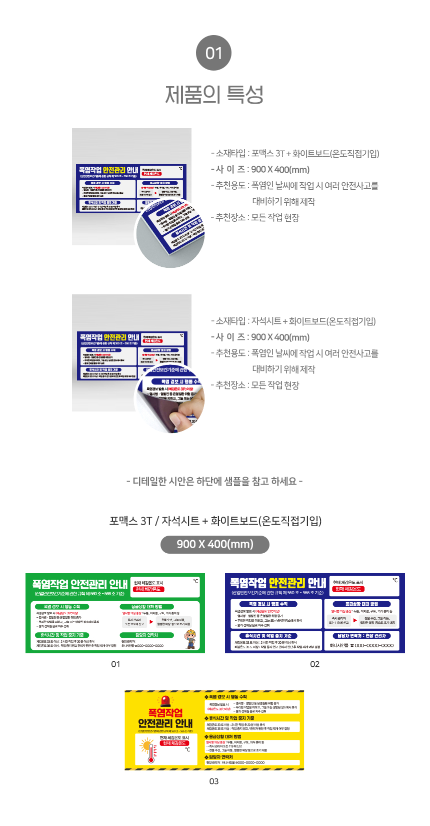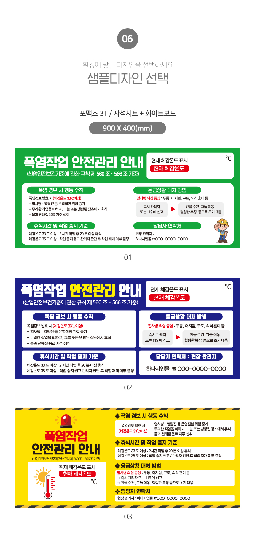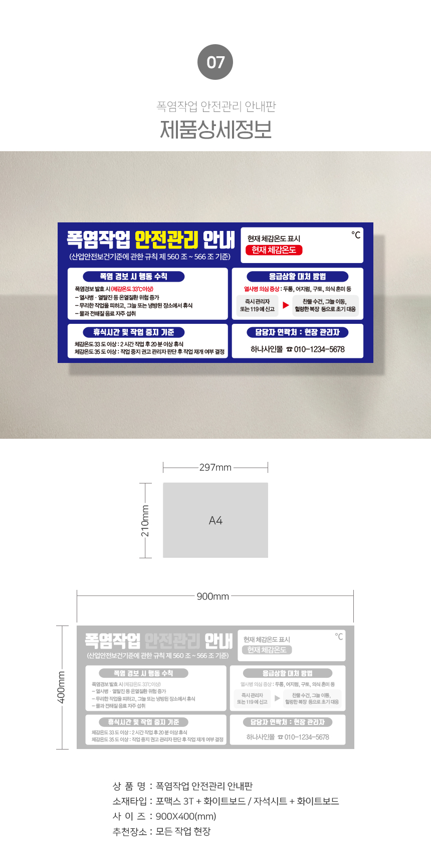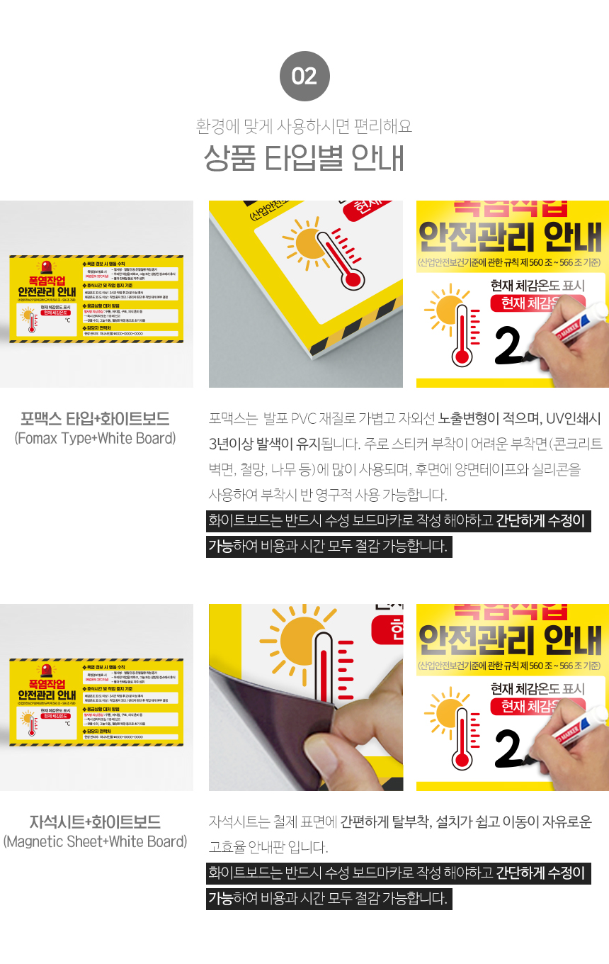 제품명 폭염작업 안전관리 안내판 포맥스 / 자석시트 + 화이트보드 대형 타입