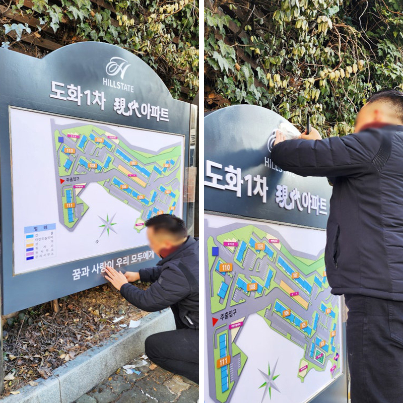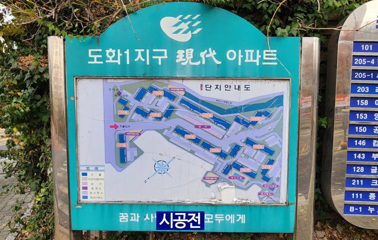 오늘은 도화현대1차 아파트 단지 안내도 리모델링 시공건입니다~!