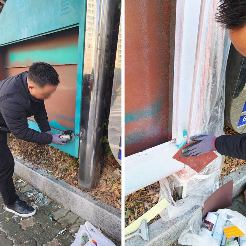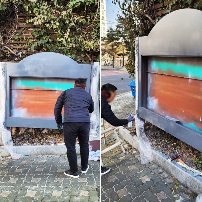 기존 구조물을 정리한 후, 깔끔한 색상으로 새롭게 도색하여