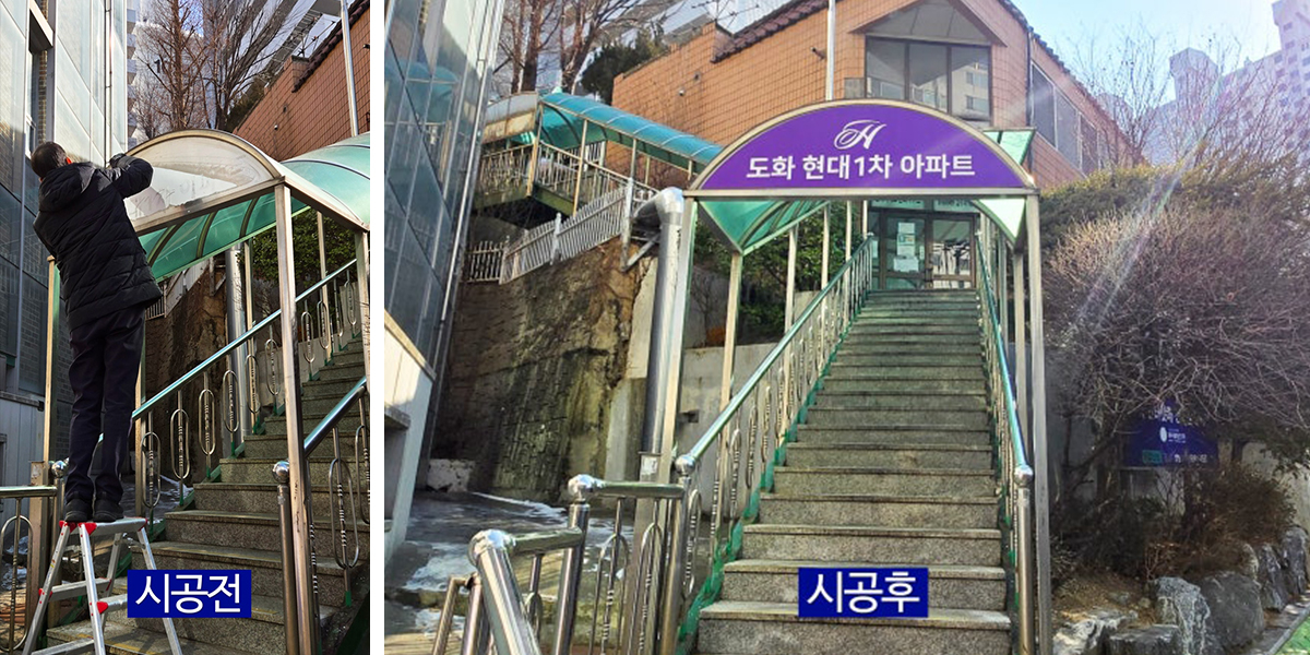 노후된 구조물에 도색 작업까지 진행하여 난이도가 높았던 공사였습니다!