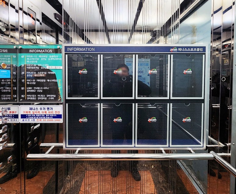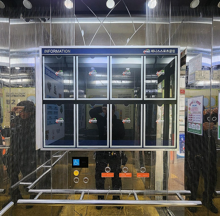 사람들이 많이 다니는 엘리베이터 내부에 시공하여 누구나 쉽게 확인할 수 있습니다~!