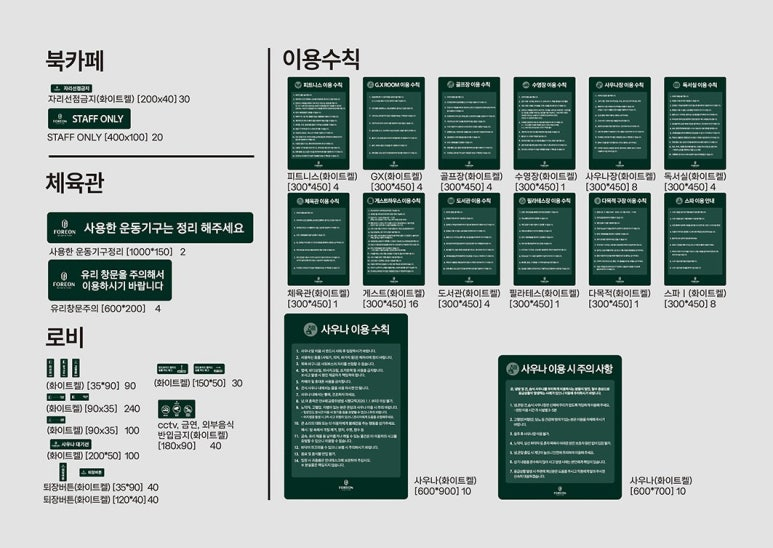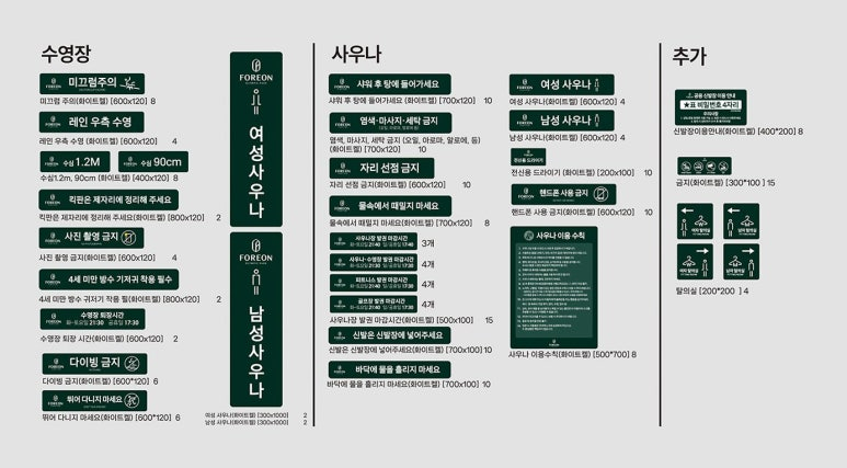 다음으로 소개해 드릴 상품은 사우나에 부착한 다양한 안내 스티커입니다~!