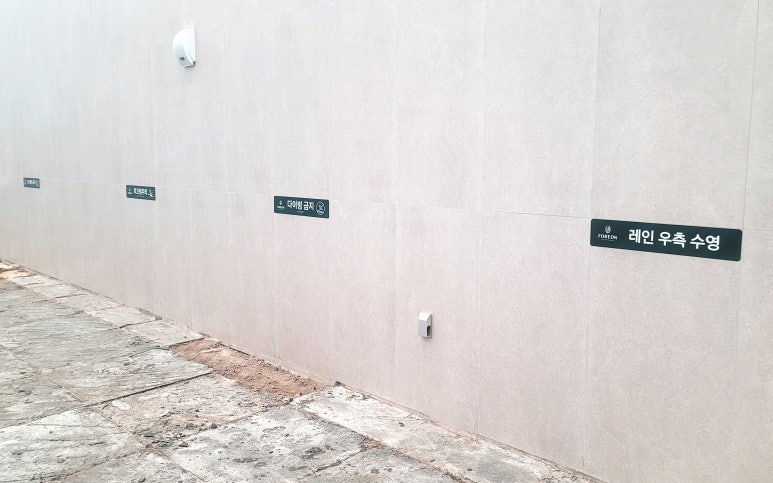 가장 먼저 소개해 드릴 상품은 수영장에 부착한 다이빙 금지, 레인 우측 수영 스티커입니다~!