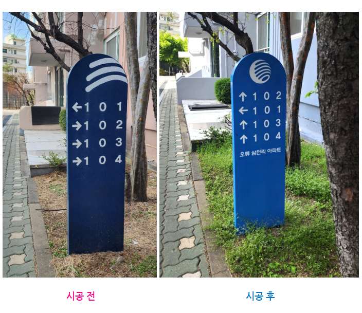 다음은 오류삼천리아파트 위치 안내판 시공 전후 모습 보여드리겠습니다~!