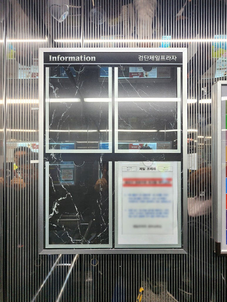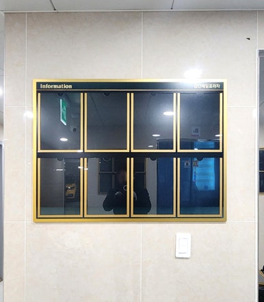 가장 먼저 소개해 드릴 게시판은 검단제일프라자에 시공한 슬림업 게시판 8구와 4구입니다~!