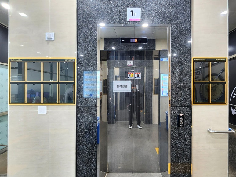 엘리베이터를 타기 전 자연스럽게 공지사항을 확인할 수 있도록