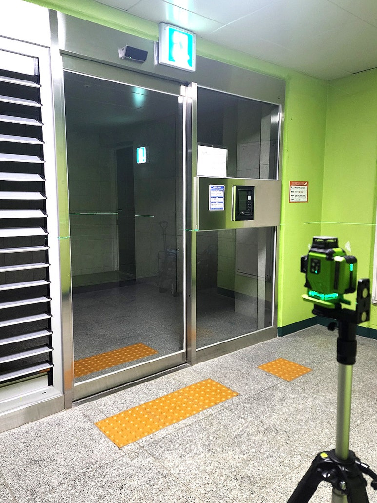 처음 현장에 도착했을 때, 출입문은 아무런 표시 없이 깔끔하지만 밋밋한 상태였어요!
