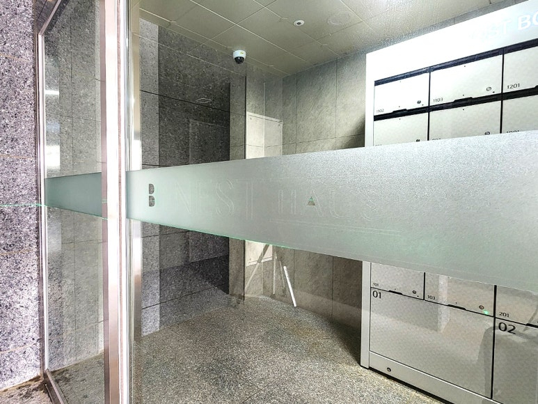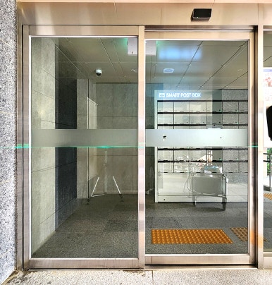 유리문 특성상 너무 투명해 충돌 위험도 있고, 외부 방문객 입장에서는