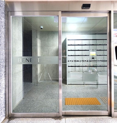 ● 너무 깨끗한 유리 출입문으로 인한 충돌 사고 예방이 필요한 곳