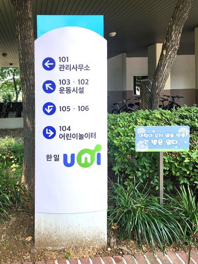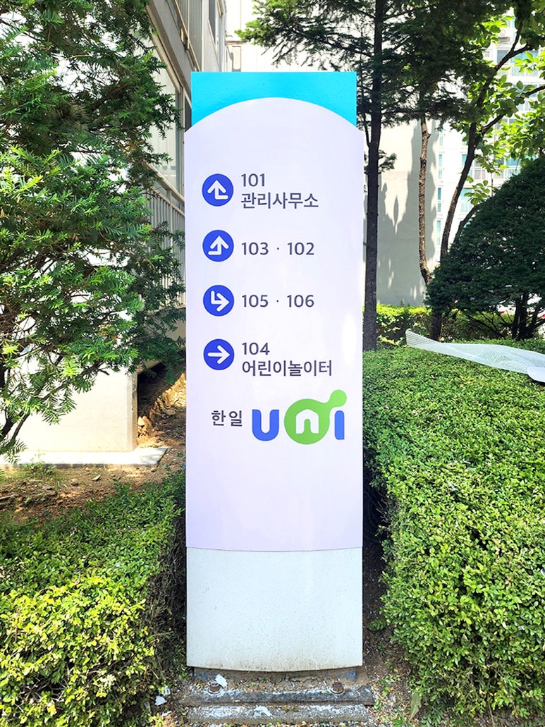 하나사인몰에서 제작한 새 안내판은 강한 색상 대비와 굵은 폰트,