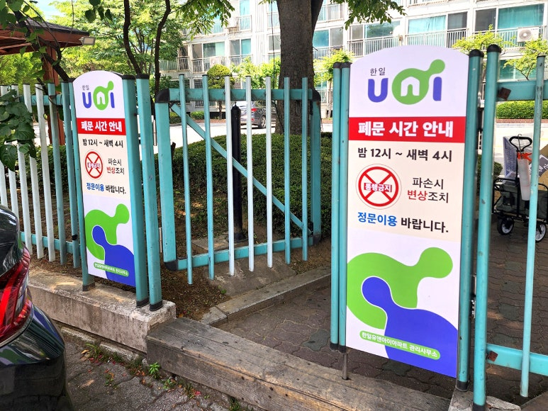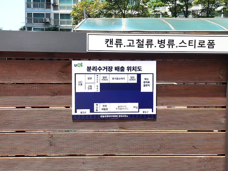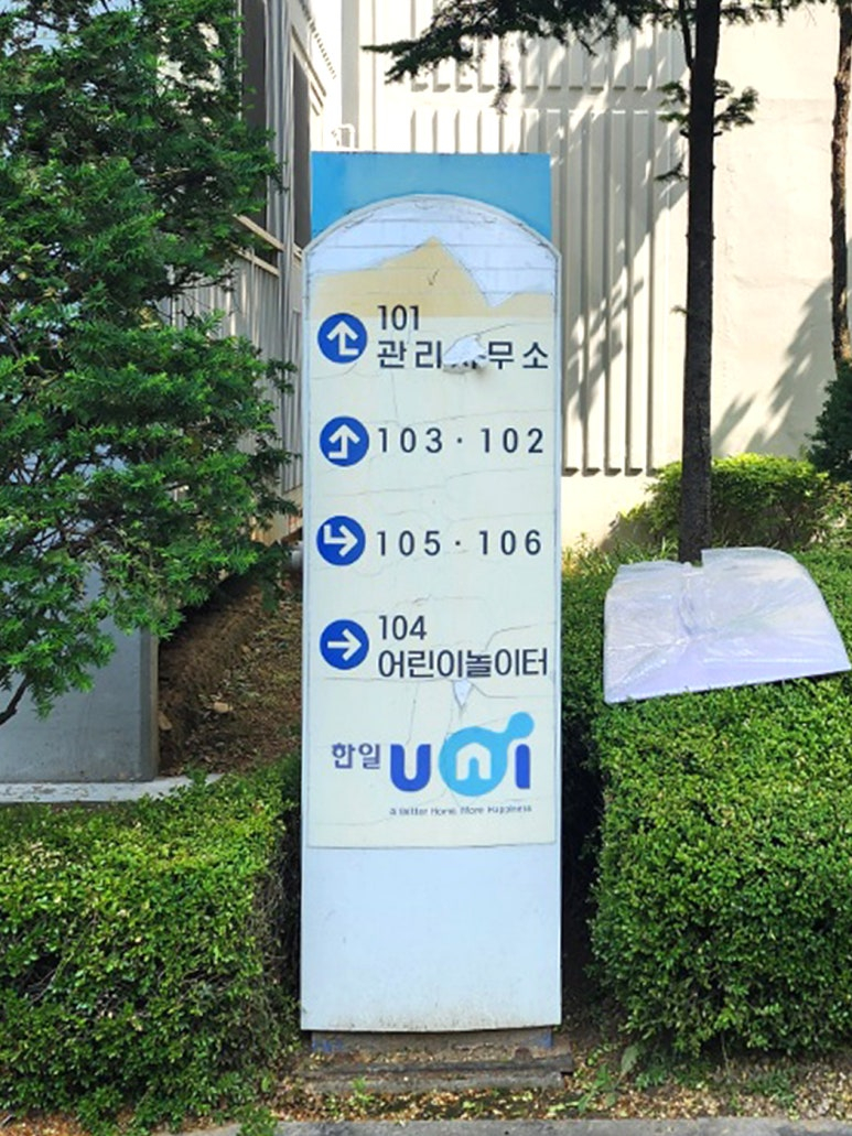 이전 안내판은 일부가 떨어져 내용이 보이지 않아 입주민 불편을 유발할 수 있었습니다~!