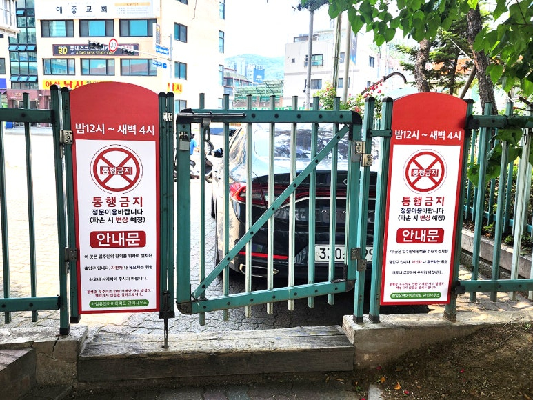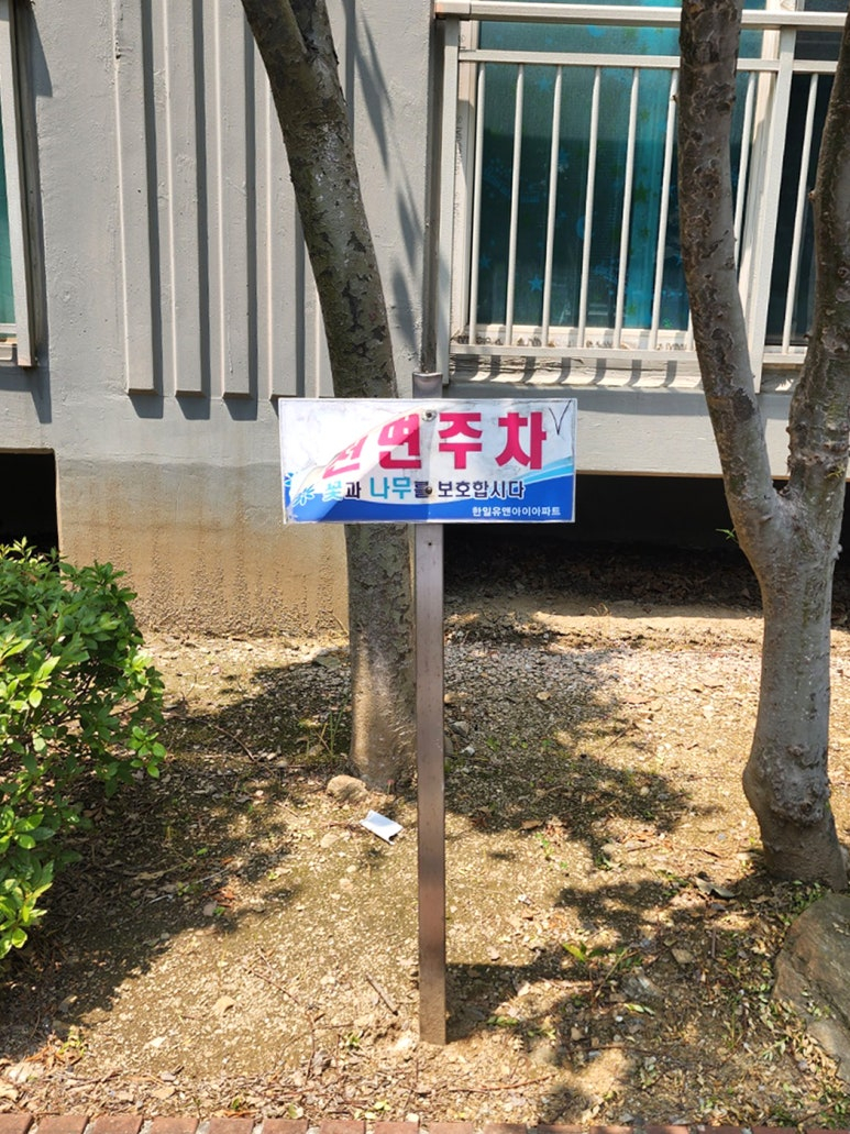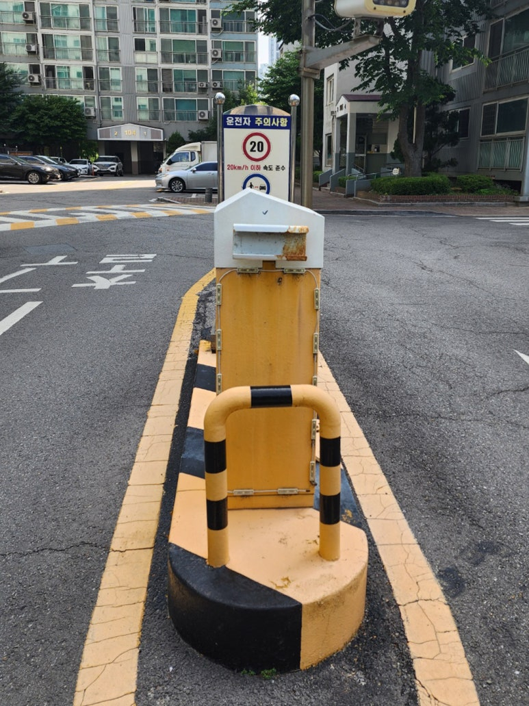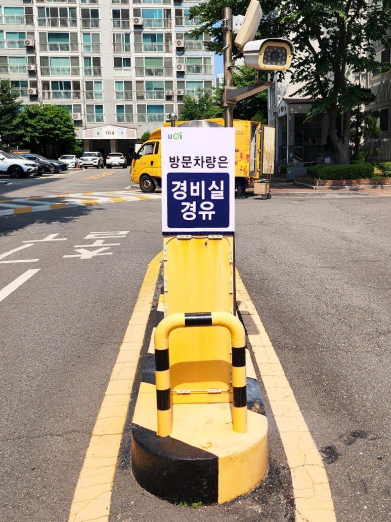 아파트 출입구 '방문차량 경비실 경유' 안내판 시공전 모습입니다~!