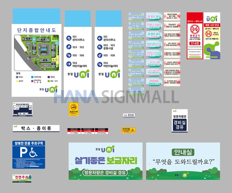 단지안내도, 말뚝안내판, 각종 표지판, 시트 등