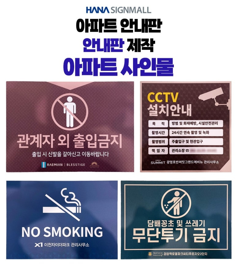 각 아파트의 개성과 필요에 맞춰 제작된 안내판들을