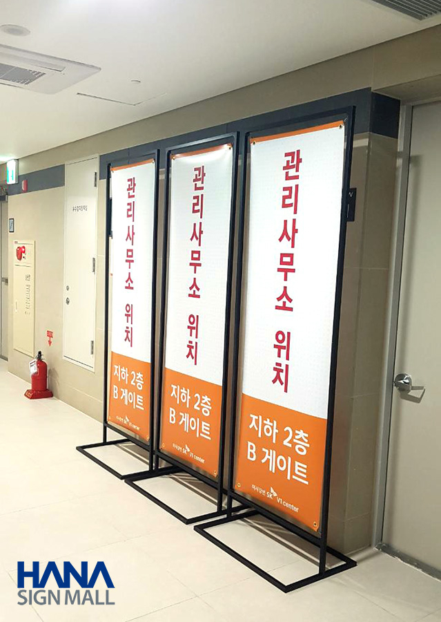 관리사무소 위치를 안내하기 위해 철제 배너도 사용하고 있어요
